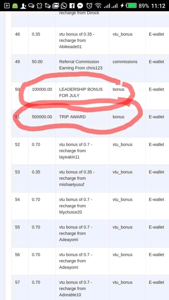 2. Referral: This is for those who want to earn big time in the business, But I’ll advise you to register with a higher package so you don’t miss out on your downlines commission earnings because each registration package has limits of downlines commission earnings except the 50k and 100k packages with unlimited downlines commission earnings, But you can still start with the package you can afford and upgrade with your earnings later. below are list of bonuses that awaits you: